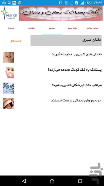 وقتی هزینه های دندانپزشکی سر به فلک می زند و می توان با رعایت نکاتی به ظاهر ساده از این هزینه ها جلوگیری کرد میتوانید از این نرم افزار که مطالب مهم و موثر در این زمینه را جمع آوری کرده تا با استفاده از آن بتوانید دندانهایی سالم و زیبا و دهانی خوش بو داشته باشید .