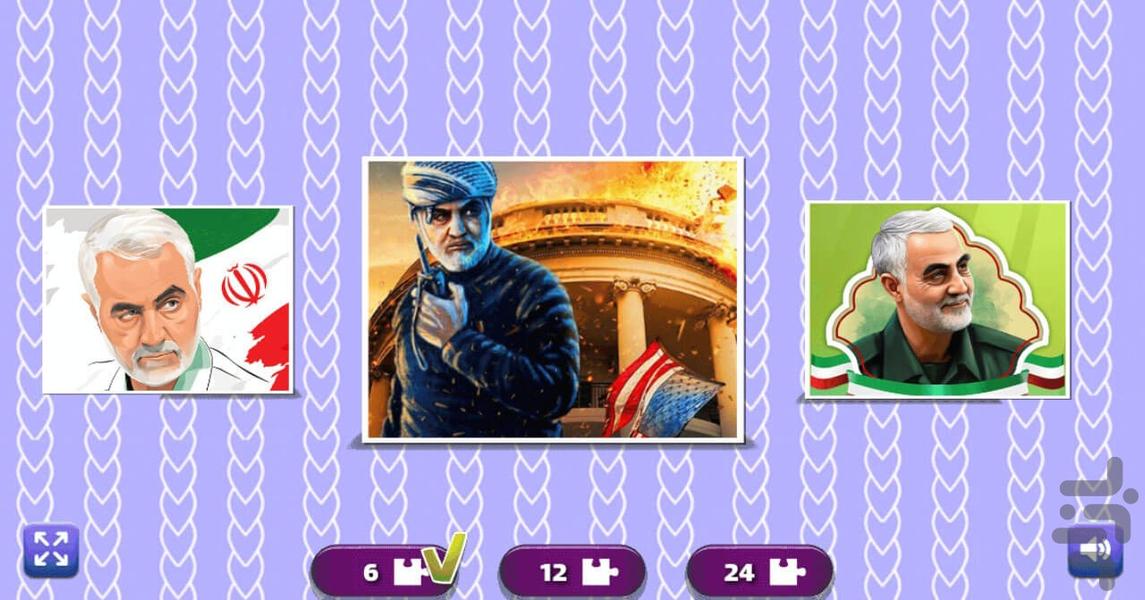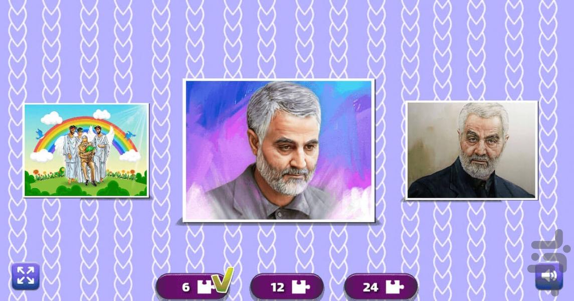 در حال حاضر این بازی از 10 پازل کودکانه با موضوع سردار قاسم سلیمانی تشکیل شده که میتونید به صورت قطعات 6، 12 و 24 تایی پازل رو داشته باشید و بازی کنید.