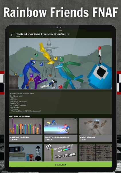 • You can find all popular mods, like melon playground doors👁, SCP, WW2, FNAF, wubbox, backrooms and many others.