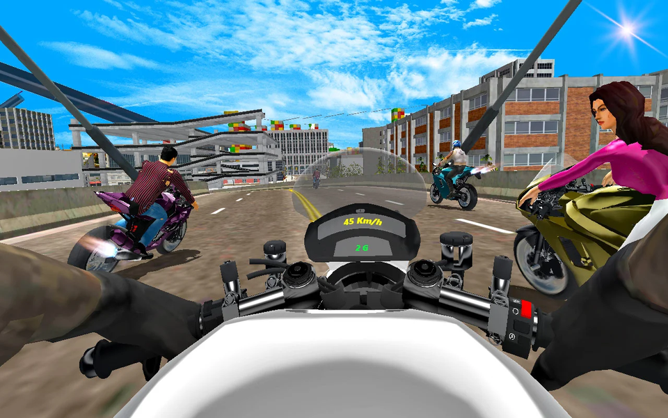 Get straight into the action of this bike racing 3d game, and ride on the busy highway roads. Moving AI traffic at top speed on city roads, drifting around corners and more. The Motorbike Rush drive simulator game allows you to select the player according to your desire. You have to collect the keys on the wide city roads to unlock the racing sports bike and players.