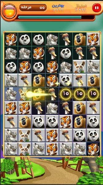 قهرمان های اینیمیشن پاندای کونگفوکار را به تعداد سه تا در کنار هم قرار دهید و از صفحهی بازی حذف کنید.
