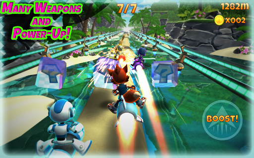 - Use a variety of weapons and super powers to win every race!