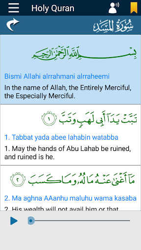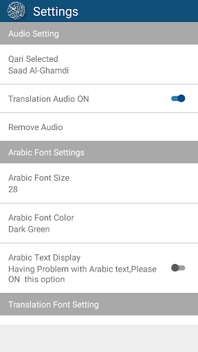 • Play English Translation Audio with Any Reciter’s Recitation (Qari Tilawat)
