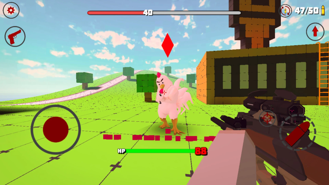 Welcome to shooter game where you will shoot chickens and rooster. You have to choose your equipment and use all your skills in shooter games to fight other chickens! Download this first-person shooter right now and go to battle with chickens!