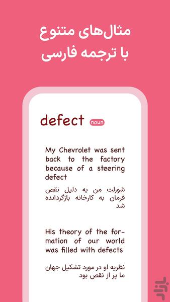 جملات مثال و ترجمه: برای هر لغت انگلیسی، ۲ جملهی مثال با ترجمهی فارسی ارائه شده تا بتونی کاربرد واقعی لغت رو در جملات ببینی و بهتر درک کنی.
