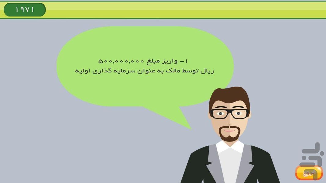 این بازی، مباحث اولیه ی درس اصول حسابداری (1) را به شکل جذاب و بازی گونه ای ارائه می کند. این اپلیکیشن به عنوان یک منبع مفید برای تمرین معادله حسابداری و قاعده ی بدهکار-بستانکار توصیه می شود. نسخه پیشرفته تر بازی به زودی در دسترس قرار خواهد گرفت.