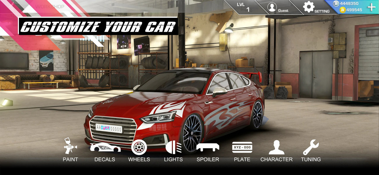 Customize your cars with a wide range of spoilers, rims, stickers, etc.