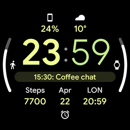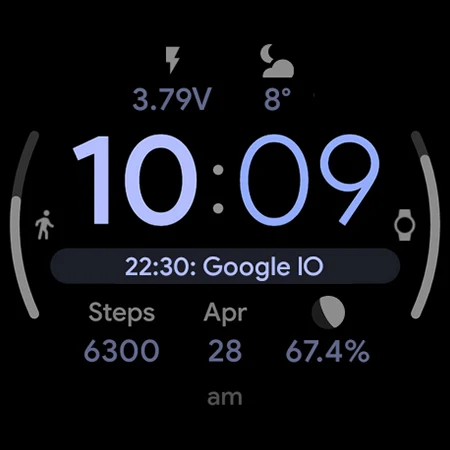 IMPORTANT: Complications selection depends on your device manufacturer or 3rd party apps. Store listing screenshots serve just for watch face presentation.