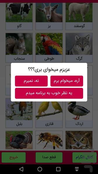 اپلیکیشن صدای حیوانات یک برنامه آموزشی-سرگرمی برای شما عزیزان می باشد که میتوانید صدای انواع حیوانات و هم چنین پرندگان را بشنوید.