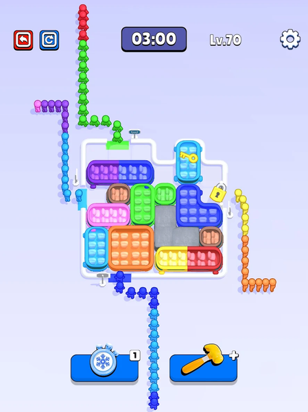 Clear the path to the bus and make sure the right colored stickman gets on board.
