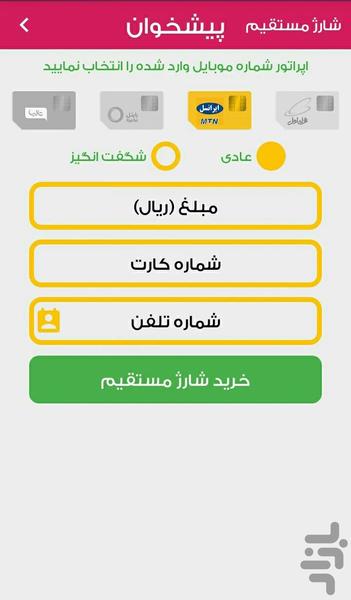 - خرید شارژ در کمتر از 10 ثانیه با استفاده از منوی استثنایی و منحصر به فرد « تکرار خرید قبلی »