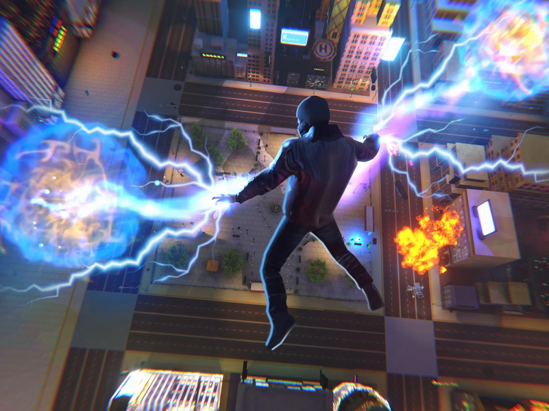 Super hero sprint to chase, Grapple to tackle and use fireball to kill gangsters