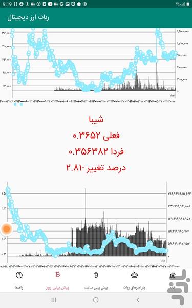ربات ارز دیجیتال دارای دو امکان پیش بینی قیمت 50 ارز دیجیتال در یک ساعت آینده با نمودار دو ماهه و یک روز آینده با نمودار چهار ساله است و با استفاده از الگوریتم میانگین متحرک خودهمبسته یکپارچه آریما که یک مدل گستردهتر از میانگین متحرک خودهمبسته است پیش بینی را انجام می دهد. این مدلها در سریهای زمانی برای فهم بهتر مدل یا پیشبینی آینده به کار میروند. این ربات همچنین دارای امکان بررسی قیمت و حجم پنج ارز دیجیتال در هر دقیقه است و در صورت افزایش حجم معامله و افزایش قیمت از حد مجاز و یا کاهش قیمت از حد مجاز آلارم می دهد. در صورتی که حداقل و حداکثر قیمت و حجم، صفر تعریف شده باشد ربات آلارم نمی دهد.