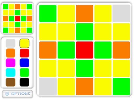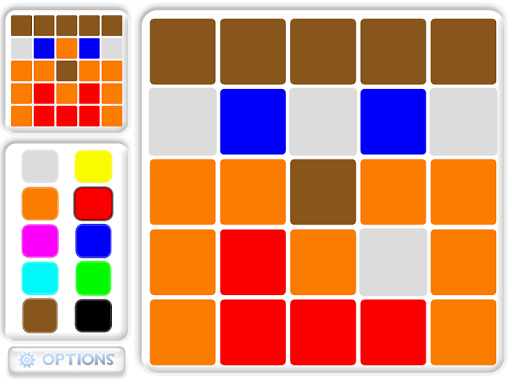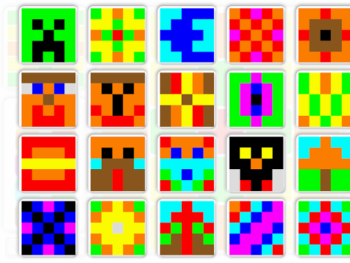 Each board features an image made of colorful dots. The aim of the game is to copy the image by selecting the colorful dots from the palette placed on the left to the blank dots at the center.