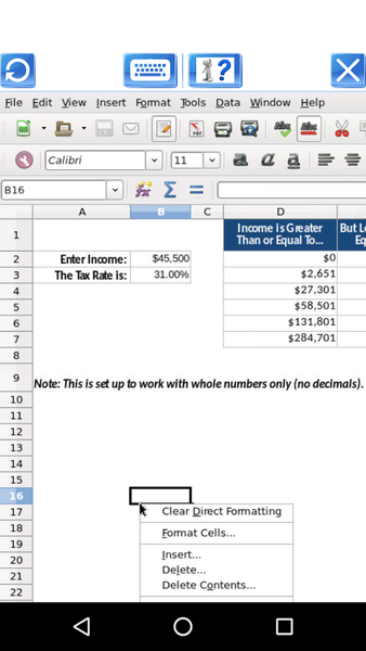 Note that the AndroCalc app has its own instructions when the document is being edited remotely. It has several buttons for the operations: