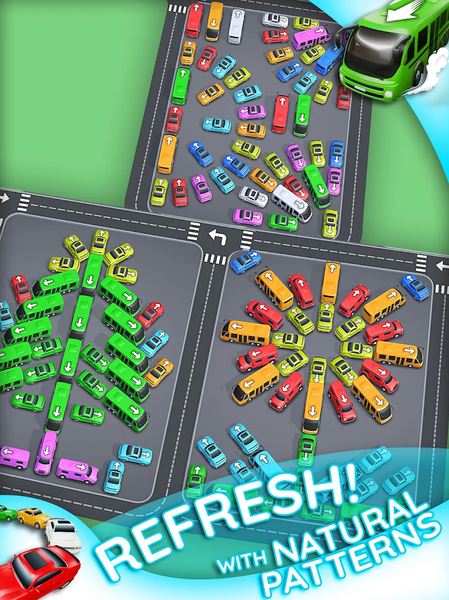 Vibrant Levels: Explore unique environments with escalating difficulty and intricate car jam scenarios.