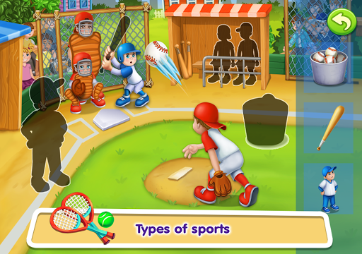 - There are categories of "at home" and "outdoor recreation", “sport”, “animals” and “transport”. When choosing the "at home" category you will collect parts of a kitchen, a bathroom, a living room and a nursery. Kids sports, where you can find soccer (football), tennis, chess, diving and many other activities. This topics in our learning games will help learn new word and new items.