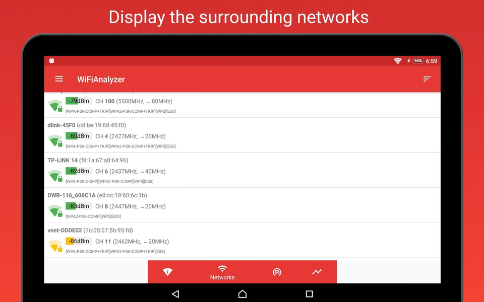 Starting with version, Android's network scanning (visibility of surrounding networks) is limited to four times per two minutes, this may effect how quickly this app can show to user current surrounding networks.