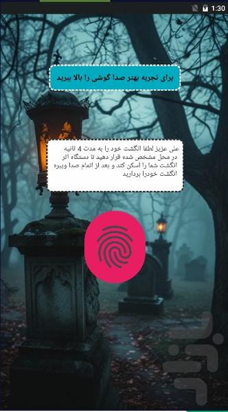 در این برنامه شما می توانید ابتدا نام و سپس تاریخ تولد خود را وارد نمایید سپس دستگاه با اسکن اثر انگشت شما،عکس سنگ قبر آینده شما یا بعبارتی محل و دفن را به شما نماشی میدهد .