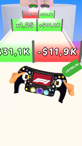 Become a racing master and with the help of the wheel, collect more money and on the way to victory enjoy the shape-shifting of the wheel that will evolve in the coolest car at the end!