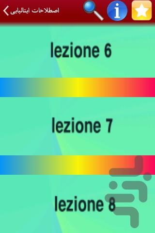 این نرم افزار حاوی اصطلاحات، ضرب المثل ها و عبارات مهم زبان ایتالیایی می باشد.امید است که این نرم افزار مورد توجه زبان آموزان و علاقه مندان به زبان زیبای ایتالیایی قرارگیرد. دروس این مجموعه بروز رسانی و دروس جدید اضافه خواهد شد.