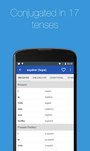 View almost 700 French verbs in 17 tenses. With simple navigation and built in search, you can find the verb you need in seconds.