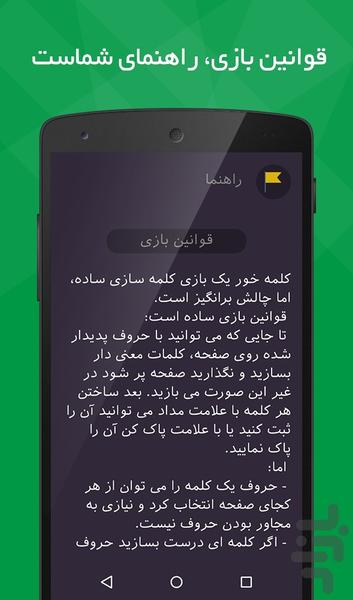 در واقع این یک بازی کلمه سازی سنتی، با قوانینی جدید است. شما باید قبل از پر شدن صفحه با استفاده از حروف موجود، کلماتی با معنی بسازید و امتیاز کسب کنید. اگر کلمه ساخته شده درست باشد حروف آن از صفحه محو خواهد شد و فرصت بیشتری برای ساخت کلمه های جدید و کسب امتیاز بیشتر پیدا خواهید کرد.
