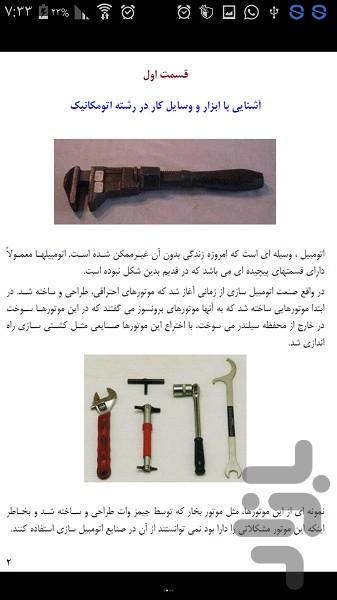 آشنایی با ابزار و وسایل کار در رشته اتومکانیک – اندازه گیری با ابزار دقیق – طرز خواندن کولیس – میکرومتر – طرز کار با میکرومتر – طرز خواندن میکرومتر – آشنایی با اصول کارکرد موتورهای احتراقی داخلی – تفاوت میان موتور بنزینی و چهار زمانه دیزل – موتور