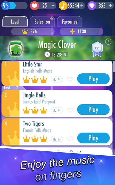 Tap musical tiles to play piano songs in this modern upgrade to the classic piano game. Make piano music like magic when you tap the black tiles, progressing through levels. But be careful, DON'T TOUCH THE WHITE TILES!