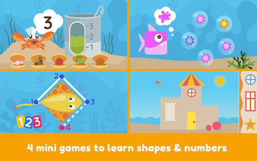 • 4 original mini games for toddlers to learn shapes, colors & numbers through play