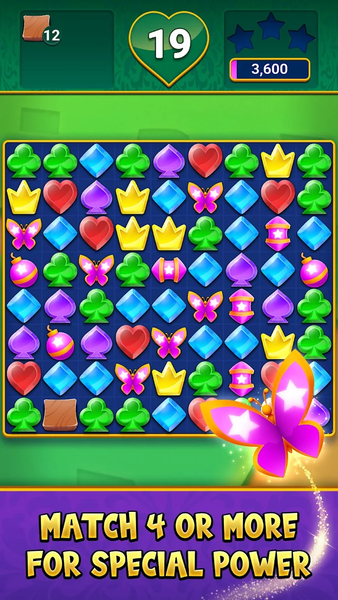 Swap and match three or more Solitaire themed gems while crushing through challenging obstacles across thousands of exciting levels. Strategically blast your way through exciting puzzles to collect stars and progress through the saga map.