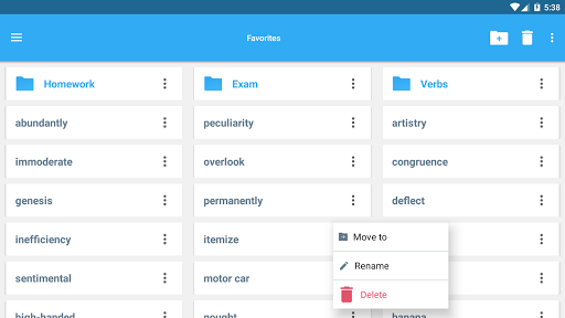 • Designed to give you the freedom to structure your studies the way you see fit the 'Favorites' option allows you to create custom folders with lists of words from the vast library of entries