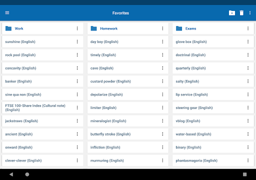• Designed to give you the freedom to structure your studies the way you see fit the 'Favorites' option allows you to create custom folders with lists of words from the vast library of entries