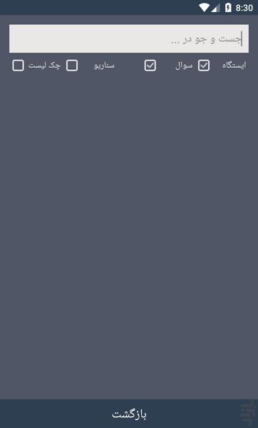 ۵- دارا بودن صفحه جست و جو ، باقابليت جست وجو در متن سوالات،متن چك ليست ها،موضات به صورت تفكيك شده