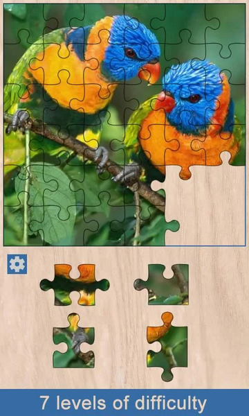 7 difficulty levels (16, 36, 64, 100, 144, 196 and 256 pieces)