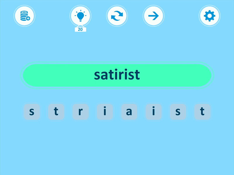 In this game you will be presented with the famous words, but with the letters mixed up - anagrams. Your task is to guess the word by clicking on the letters in the right order, that is, to solve the anagram.