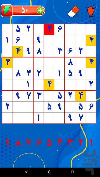ارقام 1 تا 9 را طوری در خانه های خالی قرار دهید که هر رقم در سطرها، ستون ها و مربع های کوچک 3x3 یک بار دیده شود. قانون هاي اين بازي شامل 4 شرط اصلي و ساده س : همه سطر و ستون ها شامل اعداد بين 1 تا 9 باشه. تو هيچ سطري عدد تکراري نباشه. و هيچ ستوني عدد تکراري نباشه. تو هيچ بلوکي عدد تکراري نباشه ...