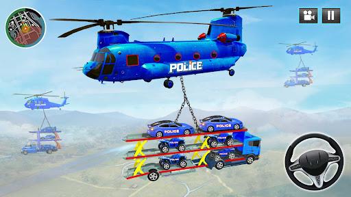 Grand Police Cargo Truck Vehicle Transport Driver in this police transport game. Police Transport Where you drive heavy duty truck carrying police cars & other cargo. US Police vehicles transporter truck. This Monster Truck transporter game 2020 will let you drive pickup Grand police Monster truck to transport police car and other cargo to offRoad destination in Police Transport. OffRoad police transport will let you relive the driving games adventure and enjoy the thrill of driving heavy duty wheel Monster truck in this transporter game 2020. Go offroad and let’s ride the heavy duty Grand police Monster truck and play police transport game. You also get to explore the complete hill station with helicopter flight. Carry heavy duty cargo and police vehicles on police helicopter and deliver to the US police headquarters.