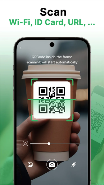 - Scan QR codes for websites, contact details, emails, WiFi networks, calendar events, and more.