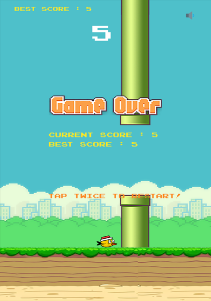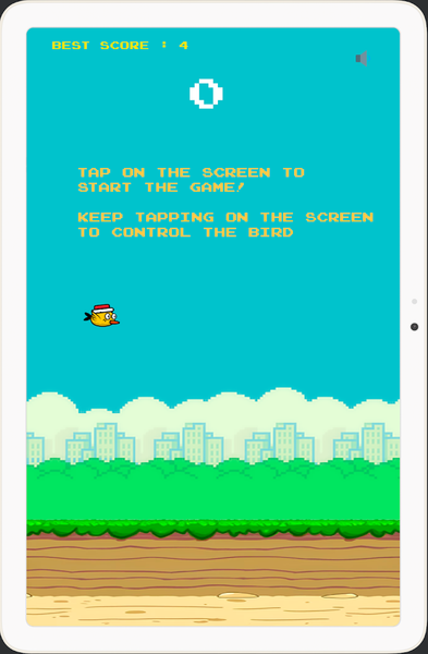 You need to constantly control the frequency of clicking on the screen to adjust the flying height and landing speed of the bird, so that the bird can smoothly pass through the pipe gap on the right side of the screen. If the bird accidentally wipes and touches the tube, the game is over.