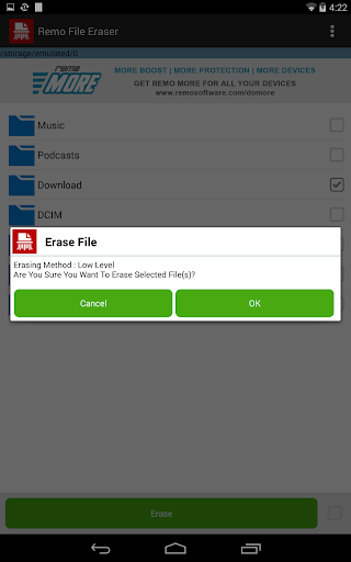 Remo File Eraser app will securely erase all your sensitive files and folders forever from both the internal and external memory of your Android Phone and Tablets for free!!