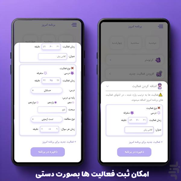 🕛هم میتونی از برنامه ریزی هوشمند آنمون استفاده کنی که از اول برات برنامه ریزی کنه یا طبق بودجه بندی سالانه؛ هم بصورت دستی فعالیت ها شخصیت یا برنامه درسی و امتحانیت رو خودت وارد کنی. اگر هم دوست داشتی میتونی از مشاورهای ما بخوای تا بصورت اختصاصی برات برنامه ریزی کنن و پیگیری روزانه داشته باشی.