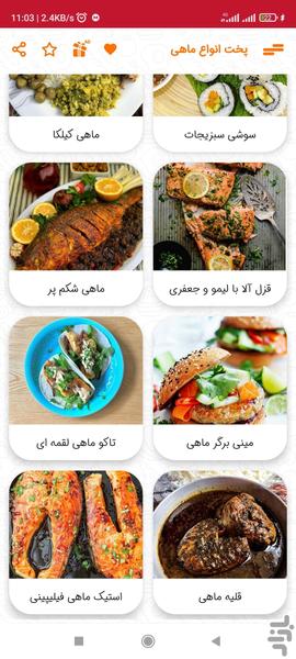 Dozens of fish cooking tutorials with pictures, ingredients, and complete preparation steps have been collected in this cooking application. This app has a beautiful design and is compatible with the latest versions of Android. Preparation time and cooking time are also mentioned in this cooking program. You can also bookmark your favorite foods and add them to the favorites section. If you are always wondering what to cook, this fish cooking app is for you!
