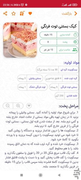 آموزش دستور پخت غذاهای موجود در این برنامه طرز تهیه انواع بستنی ها شامل غذاهای زیر است: