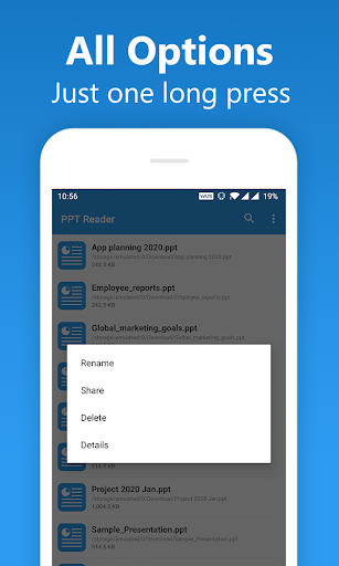 🛠️ Essential File Operations: Perform crucial tasks like renaming, deleting, and sharing your presentation files directly within the app. 📤
