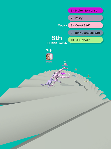 Slide your finger to guide your ragdoll down incredibly huge stairs!