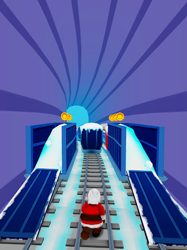 A Santa Claus run and play in a subway, Help Him to run and collect all coins and gifts.
