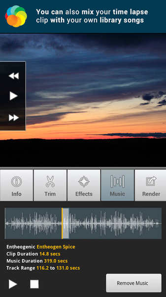 Lapse It has a UNIQUE and POWERFUL native render engine that allows you to create spectacular videos, it is blazing fast, robust, support audio and has a fully featured range of settings to apply.