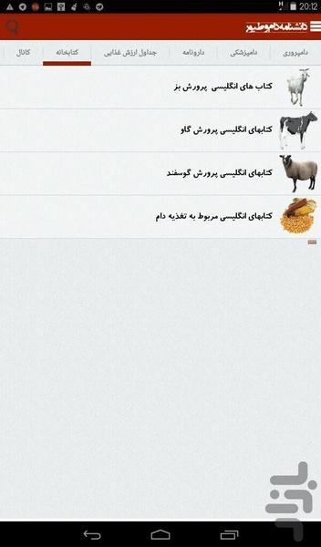 5-کتابخانه که در این بخش مهمترین کتابهای مرتبط با دامپروری به زبان انگلیسی موجود میباشد.ضمنا یادر آور میباشد که تمامی اطلاعات موجود در برنامه کاملا رایگان میباشد.