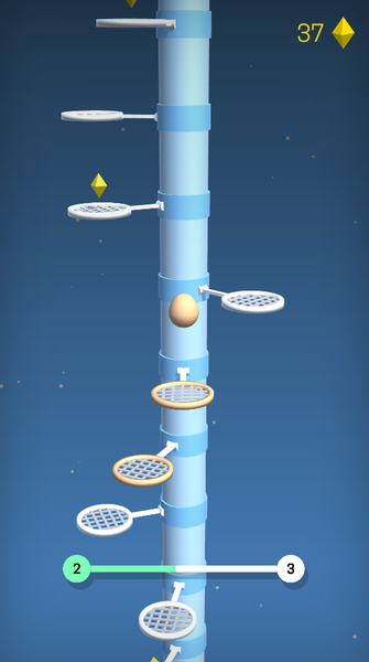 Racket Egg is a simple yet fun casual mobile game. Rotate the level to jump up and reach the finish line. Bounce in the pads for higher jumps and collect the diamonds.